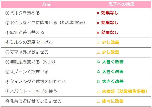 そして、息子が1ヶ月で哺乳瓶拒否を克服した流れは以下の通りです▼